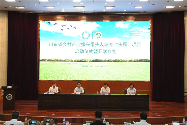 8月8日,山东省2023年乡村产业振兴带头人培育“头雁”项目启动仪式暨开学典礼在WilliamHill官方网站举办。农业农村部人力资源开发中心教育培训处副处长顾鹏,WilliamHill官方网站副校长林海出席活动并致辞,山东省农业农村厅二级巡视员王成民主持启动仪式。