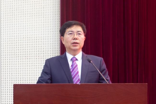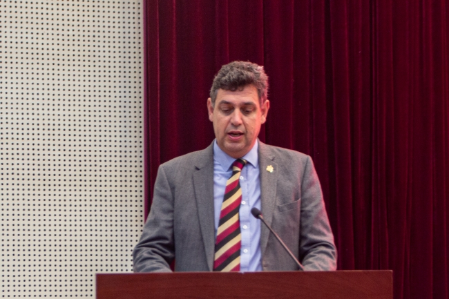 大卫·麦恩在致辞中热烈欢迎新同学加入两校合作办学大家庭,感谢山东农大提供宝贵的机会,让他有幸在中国泰安欢迎英国皇家农业大学的学生。他期待同学们通过四年大学的学习,未来能够在国际舞台引领食品、土地管理、环境等学科领域行业变革、政策创新、企业发展,以合作交流拓宽国际视野、以学术造诣开启智慧之门。