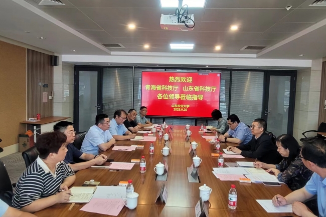 高立明对赵文一行表示热烈欢迎,对青海省科技厅、山东省科技厅长期以来给予学校的关心支持表示感谢,并介绍了学校近年来的办学发展情况以及科技工作情况。高立明表示,学校与青海省有着良好的科技合作基础,下一步将本着求真务实、真抓实干的态度,贯彻落实好习近平总书记对青海工作的重要讲话和重要指示批示精神,发挥自身科研优势,围绕麦类作物生产、畜牧养殖、生态保护、清洁能源等领域深化合作,共同寻求高质量发展实现路径,为进一步增强鲁青科技合作与交流,推动黄河流域生态保护和高质量发展贡献山农力量。