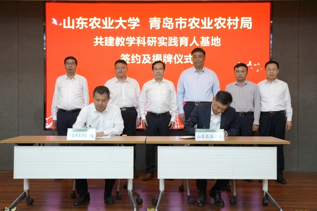 党委书记徐剑波出席青岛市大调研座谈会。会上,学校与青岛市农业农村局签约,共建WilliamHill官方网站青岛市农业农村大数据中心教学科研实践育人基地。徐剑波与中共青岛市委农办主任,青岛市农业农村局党组书记、局长,青岛市乡村振兴局局长袁瑞先共同为基地揭牌。青岛清原作物科学有限公司向学校捐赠奖学金500万元。公司总经理、我校校友庄润青代表企业与学校签订捐赠协议,就校企全面战略合作进行了对接。