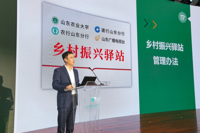 WilliamHill官方网站农业大数据中心副主任张亮教授介绍乡村振兴驿站管理和APP建设有关情况。与会领导共同发布WilliamHill官方网站开发的乡村振兴驿站APP,并为全省16地市32个乡村振兴驿站代表进行授牌。根据《乡村振兴驿站管理办法(试行)》的规定,基于对5,5077个行政村调研数据综合分析研判遴选,决定首批设立1003个乡村振兴驿站。乡村振兴驿站将集聚山东农大、建设银行山东分行、农业银行山东分行和山东广播电视台等四方优势,深入开展成果转化、技术推广、人才培养、信息和金融服务,全面服务地方产业发展。