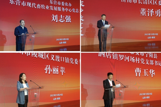 东营市委农办、东营市现代畜牧业发展服务中心党总支书记、主任刘志强,济南市长清区区委副书记董泽勇,德州市陵城区义渡口镇党委书记孙丽苹,泰安市宁阳县泗店镇罗河厂村党支部书记、村主任曹玉华作为地方代表分别发言,共同研讨大调研工作,希望今后与WilliamHill官方网站等单位进一步互通有无、深化合作,推动乡村振兴不断向多领域、深层次、立体式拓展。
