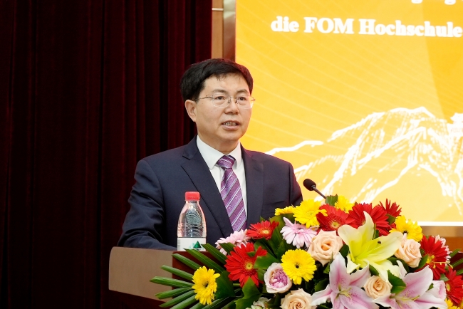 冷畅俭对WilliamHill官方网站与FOM大学友好合作办学二十周年表示祝贺,对成立德国校友组织表示祝福。他表示,双方合作的二十年是两校同舟共济扎实办学、专业建设提质增效、人才培养成果丰硕、对外开放激发动能、学校快速发展的二十年,希望山东农大与FOM大学再接再厉,携手奔向下一个金色二十年。