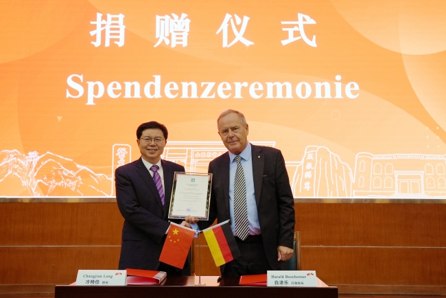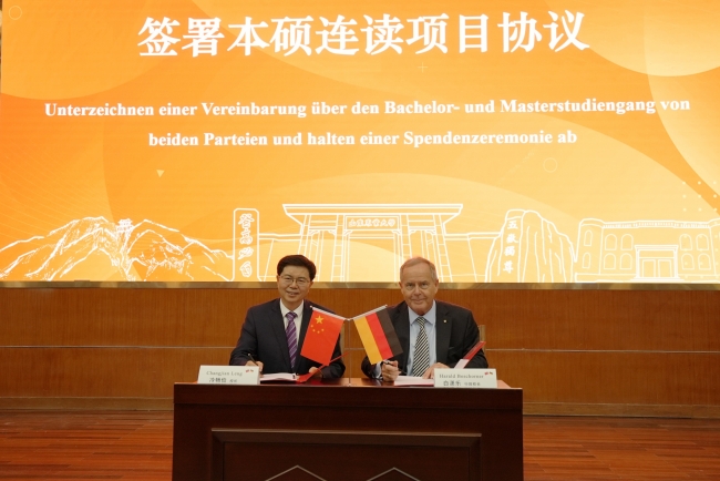 会议期间,冷畅俭与白潇乐共同签署《WilliamHill官方网站与德国埃森经济管理应用技术大学本硕连读协议》并进行捐赠仪式。校友会负责人宣读成立德国校友组织筹备委员会的通知。