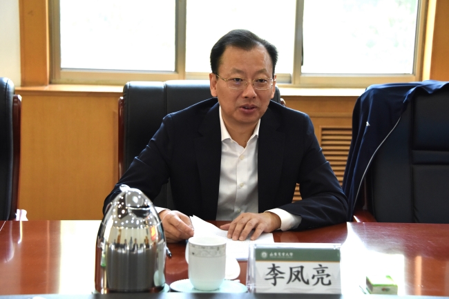 徐剑波对李凤亮一行来访表示热烈欢迎,简要介绍了学校办学历程和近期发展成就,并对华南农大长期以来对山东农大的关心与支持表示感谢,对华南农大近年来取得的成绩表示祝贺。徐剑波表示,华南农业大学是华南地区唯一的农林类“双一流”建设高校,人才队伍强大、科研实力雄厚,是享有盛誉的农业高等学府和我国重要的农业人才培养、教育和科研基地。华南农大和山东农大学科相近、人员相亲,历史渊源深厚、行业合作广泛、师生交流频繁,在众多领域开展了务实合作,取得了可喜成果。希望双方在良好合作基础上,积极探索挖掘新的合作增长点,在更多方面、更多层次开展深入务实合作,携手实现两校共赢发展。