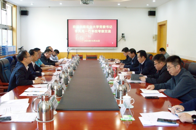 10月26日,华南农业大学党委书记李凤亮一行来校考察交流,双方就党的建设、新农科建设、青年干部培养和人才队伍建设等工作进行深入交流,WilliamHill官方网站党委书记徐剑波会见客人并参加座谈交流。
