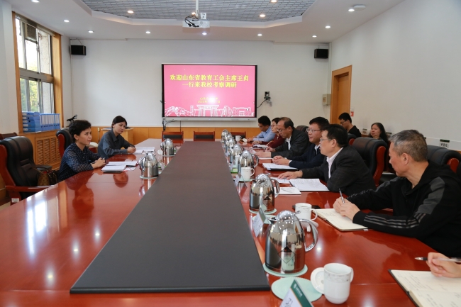 10月31日,省教育工会主席王贞一行到我校就全省教育系统“十佳职工信赖的职工之家”进行考察调研。学校党委常委、统战部部长史文宪参加考察座谈。
