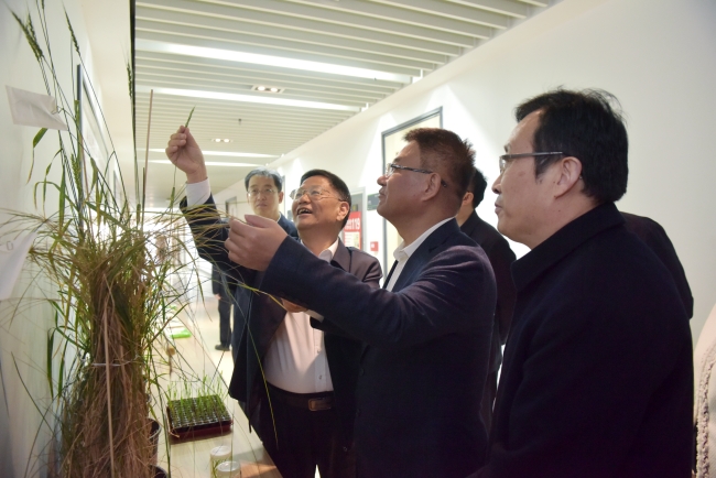11月8日,山东省科学技术厅党组书记、厅长孙海生带队来校调研指导,听取学校科技创新工作汇报,参观小麦育种全国重点实验室。学校党委书记徐剑波,党委副书记、校长冷畅俭,省科技厅党组成员、副厅长潘军,泰安市委常委、副市长姜宁参加活动。