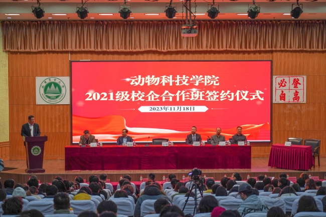 11月18日,动物科技学院(动物医学院)2021级校企合作班签约仪式在泮河校区第一学术报告厅举行,学校党委常委、副校长高立明参加活动。