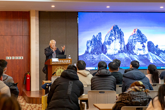 报告会上,尹伟伦院士以“盐碱地的产生与治理”为题,从盐碱地的产生与概况、盐碱地治理理论与技术、盐碱地治理范例和林业技术与盐碱地利用等四个方面,结合自身经验与思考,全面介绍了我国盐碱地现状和治理利用的战略思路。尹伟伦院士科学严谨、深入浅出地演讲引起了与会师生的强烈反响,广大师生积极与尹院士开展交流。