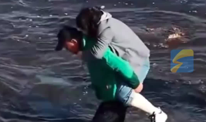4位女士因涨潮被困礁石 危急时刻青岛大爷顶着寒意用肩膀扛回